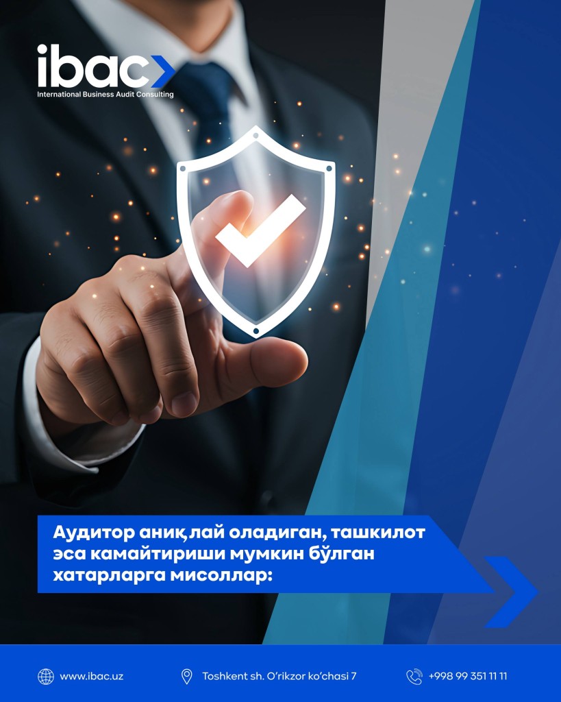 Aудитор аниқлай оладиган, ташкилот эса камайтириши мумкин бўлган хатарларга мисоллар: